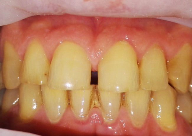 Постепенно налёт твердеет и превращается в камень. Разрастание камня происходит медленно — от десны к режущему краю.