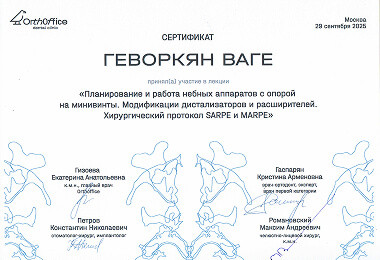 Владеет современными методами исправления прикуса на несъёмной и съёмной ортодонтической аппаратуре. Уверен, что врач всегда должен стремиться к совершенствованию своих навыков. Активно посещает семинары и лекции по своей специализации.