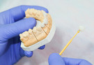Затем был снят слепок с зубов пациентки, согласована форма восковой модели, а на обработанные зубы установлены временные виниры.
